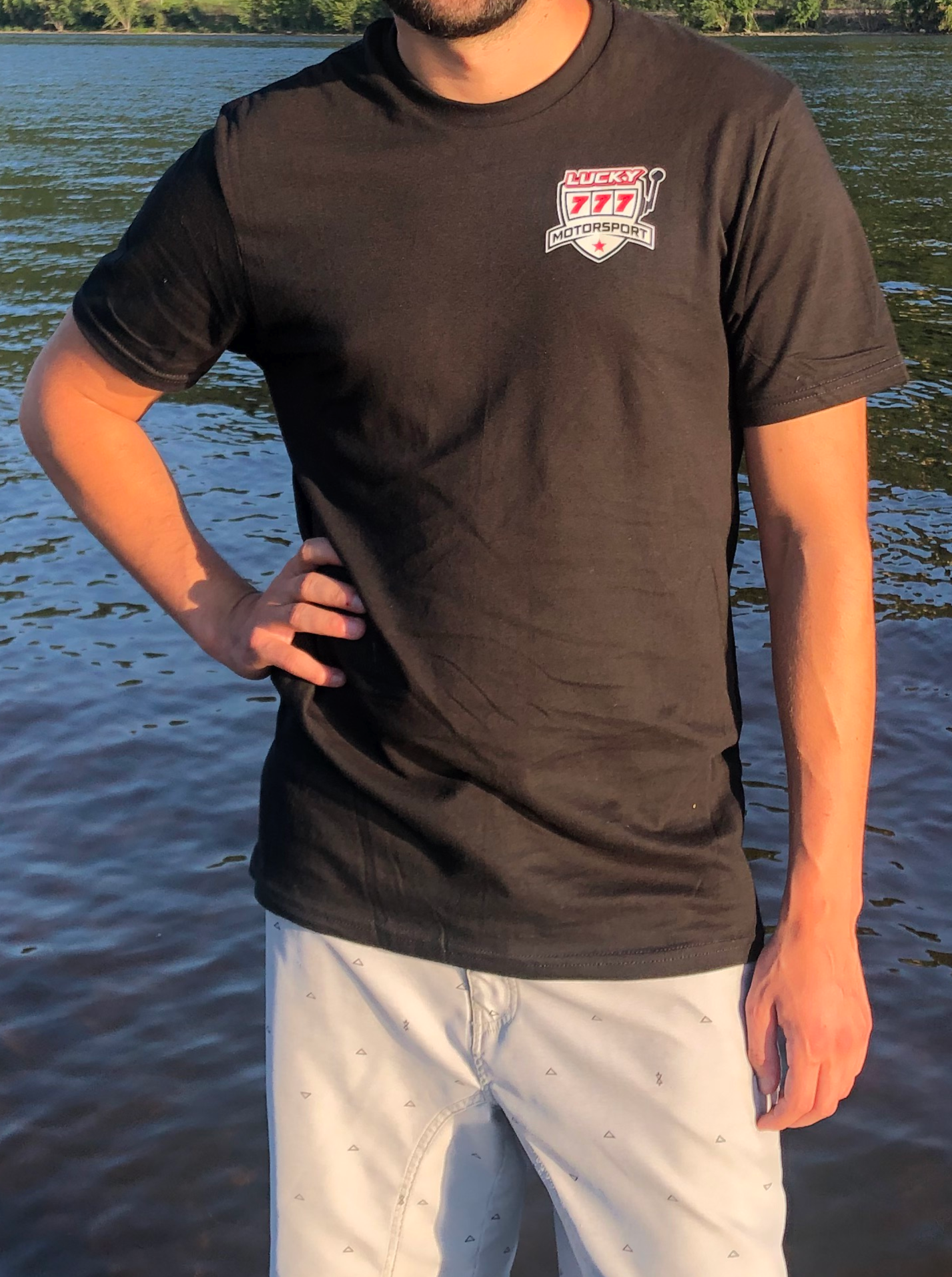 The Premium OG T. Lucky Sevens Motorsport logo printed left chest. Literally an extremely soft and comfortable T shirt, much higher quality than an average cotton shirt. Described as feeling between a cotton T shirt and a dry fit style shirt.