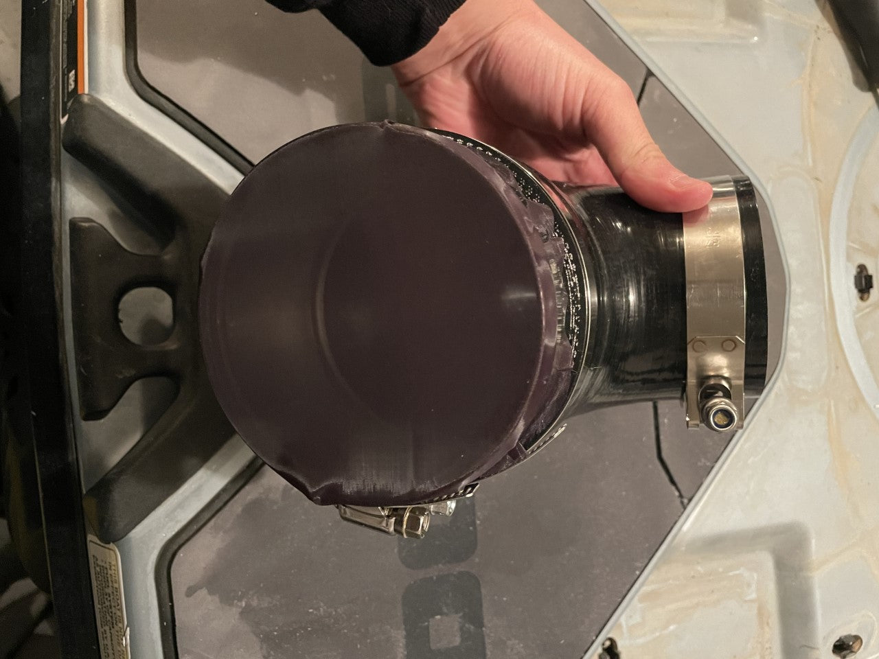 The last picture shows our same air intake screen that was tested on a different shop ski. After only about 15 hours of use you can see how much has accumulated on the filter element. (don't mind the cruddy hose clamp in the picture, our kits we sell have upgraded Stainless clamps as noted)